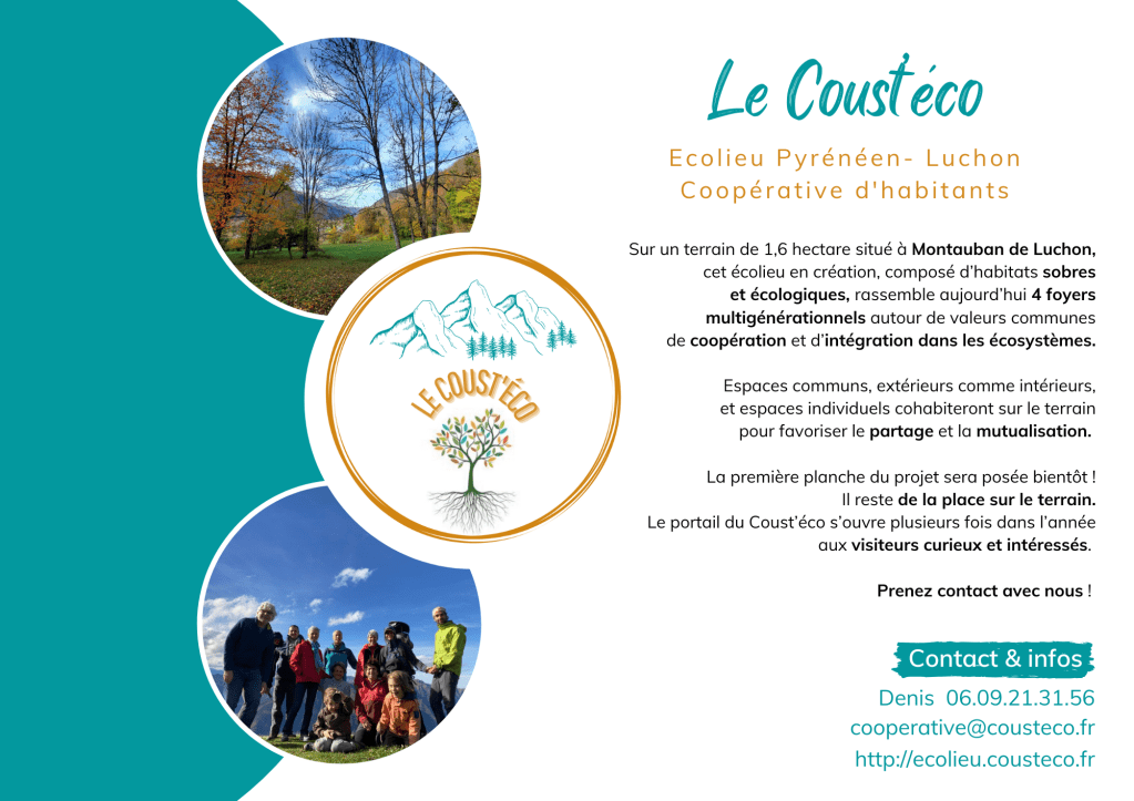 La première planche du projet sera posée bientôt ! Il reste de la place sur le terrain. Le portail du Coust’éco s’ouvre plusieurs fois dans l’année aux visiteurs curieux et intéressés.